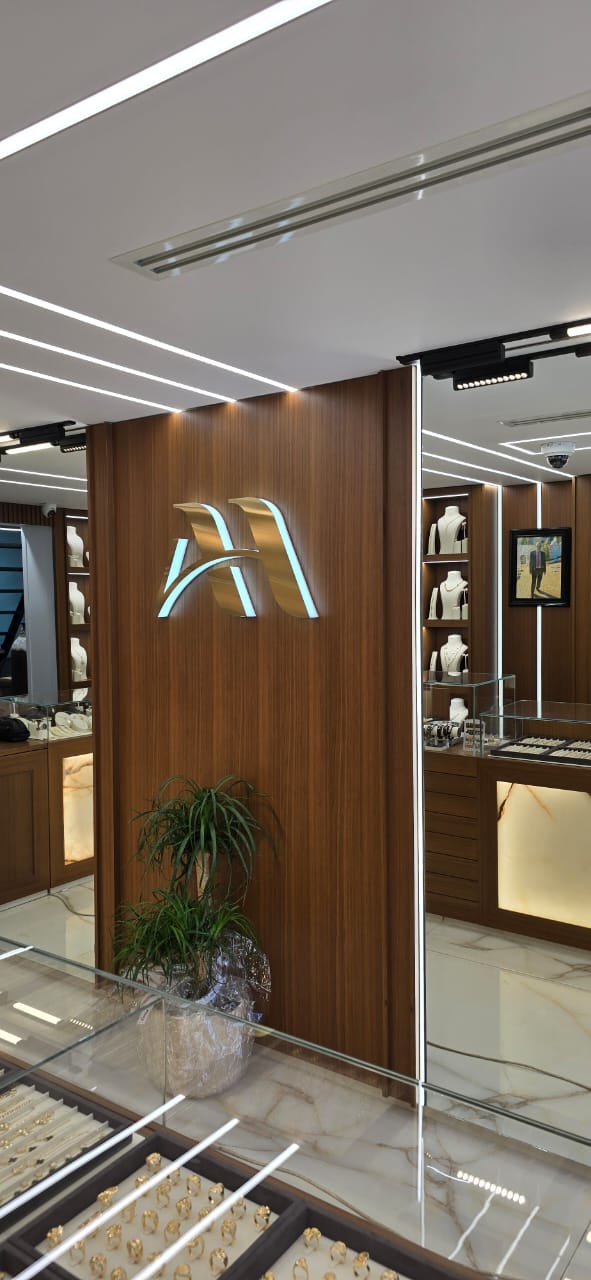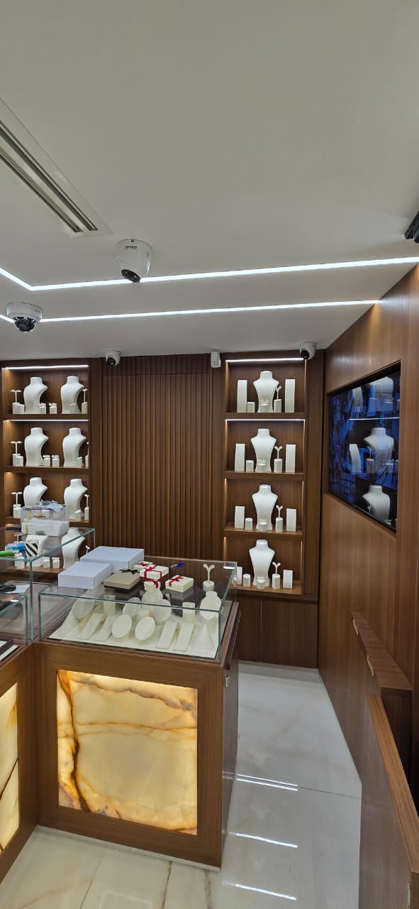 A stunning jewellery shop design project where we seamlessly blended architecture with aesthetic finesse. From conceptualizing the layout to executing every detail, our team crafted a space that highlights the beauty of the jewellery while providing a luxurious and inviting atmosphere. The design incorporates elegant materials, strategic lighting, and a sophisticated flow, ensuring both functionality and an unforgettable customer experience. This project showcases our expertise in creating retail environments that not only enhance the product but also captivate the customer.